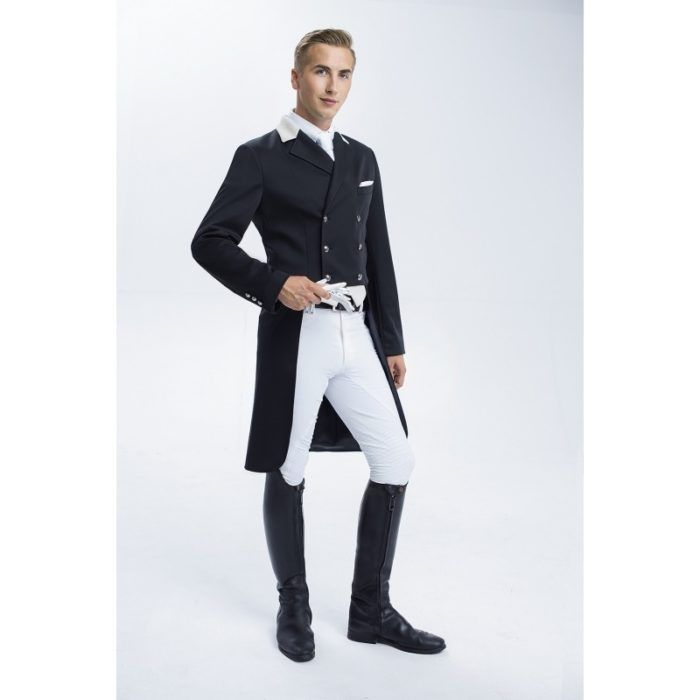 Frac de concurso para hombre , elástico, Softshell y resistente al agua. Elaborado en material tecnico strech para permitir una mayor libertad de movimientos y Detalles de cordon blanco en cuello, puños y y solapa bolsillos . Bolsillo delantero con pico pañuelo. Ventilaciones debajo de las axilas para una mayor ventilación. Doble picos chaleco intercambiables