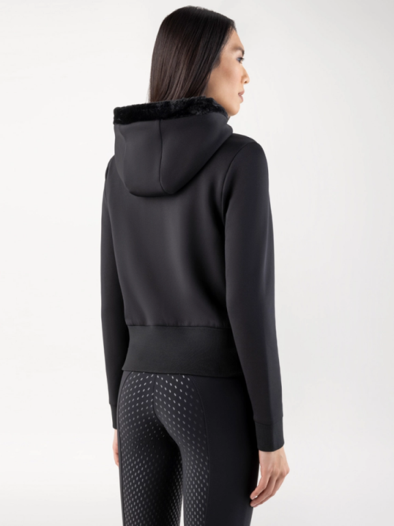Cálida y moderna, esta sudadera de cremallera completa para mujer combina comodidad y estilo. Forrada con suave piel ecológica aislante, garantiza transpirabilidad y calidez durante las estaciones más frías. Equipada con una cremallera de doble cursor y dos bolsillos con cremallera para mayor practicidad, presenta puños y dobladillo de canalé suave para un ajuste ceñido. El brillante logotipo de Equiline en el pecho y el hombro le aporta un toque de elegancia y refinamiento.La modelo mide 175 cm y lleva una talla S.