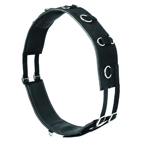 Cinchuelo de doma y entrenamiento realizado en pvc y nylon. Cincha corta incluida de 80 cm. Esta compuesto por 4 anillas de 3,75 cm de diámetro y 7 más pequeñas de 2,5 cm, una de estas anillas pequeñas está situada en la parte inferior de la cincha para sujetar otro accesorios.