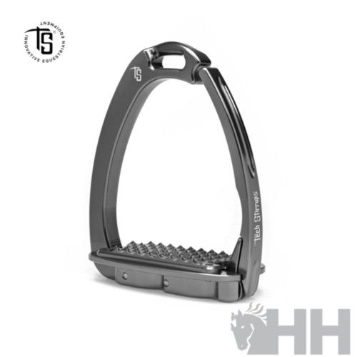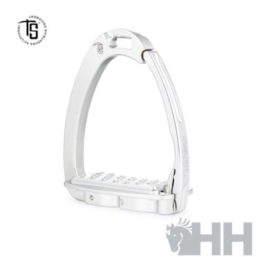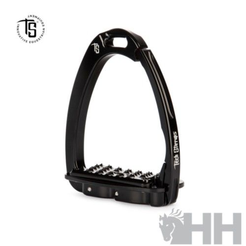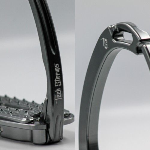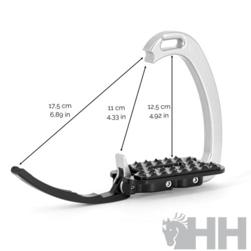 El resorte instalado permite que la parte móvil permanezca cerrada durante el uso y se abra cuando sea necesario a través de un apoyo del pie.La parte móvil está diseñada para volver a su posición de cierre una vez liberado el pie, de forma que no quede ninguna parte saliente que pueda dañar al jinete y/o al caballo en caso de que el caballo caiga al suelo.Estos estribos incorporan una inclinación del taco de 2,5º. El diseño del agarre de este taco es específico para la práctica del salto y completo. Peso del estribo 560 g.Todos los estribos Tech Stirrups se producen en ITALIA en sus propias instalaciones utilizando aluminio ERGAL en frío para ofrecer el más alto nivel de calidad y cada uno de sus productos ha sido diseñado con sus propias características técnicas y funcionales, para dar a cada jinete la oportunidad de elegir los estribos más adecuados para su disciplina y necesidades.