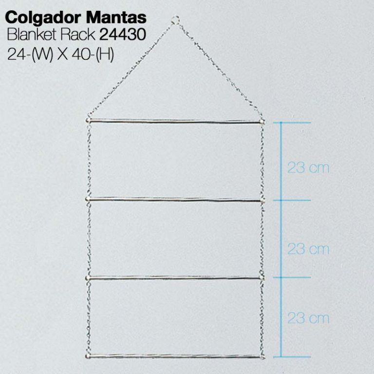 Sirve para colgar mantas o mantillas.Separación entre barras de 23 cm.Las barras van unidas con una cadena.Se fija a la pared o a una barra horizontal.Fabricado en metal.