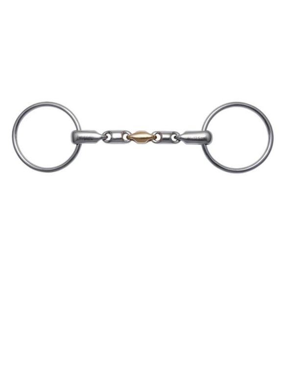 l bocado Waterford es un bocado único compuesto por una serie de eslabones interconectados. Contrario a la creencia popular, su acción es muy suave, ya que los eslabones individuales permiten el movimiento en todas direcciones y la presión se distribuye uniformemente sobre la lengua, las barras y las comisuras de la boca del caballo. La movilidad constante de los eslabones garantiza que ningún punto de la boca del caballo esté sometido a una presión significativa durante demasiado tiempo. Este bocado es especialmente adecuado para caballos que tienden a apoyarse en él o a bloquearlo. El movimiento constante en la boca puede animar al caballo a estar más atento a la mano del jinete.Las anillas de deslizamiento libre aseguran que el bocado siempre encuentre una posición neutra en la boca del caballo. La embocadura de acero inoxidable es completamente inodora e insípida, por lo que es apta para caballos sensibles. La pieza central de cobre dulce estimula la masticación del caballo.Ventajas en resumenEfectoDistribución uniforme de la presión en toda la boca del caballoPermite que el caballo mueva el bocado de forma independienteEmbocadaFabricada en acero inoxidableEl acero inoxidable es robusto, insípido e inodoroCobre dulce Soft Roll: El ligero sabor dulce del cobre es muy bien aceptado por los caballos y estimula la masticación90 % cobre, 7 % hierro y aluminio, sin níquel y especialmente robusto¿Para qué caballos es ideal este bocado?Caballos con poca actividad bucal que tienden a apoyarse en el bocadoCaballos que se apoyan en la manoNota sobre el uso correctoCualquier bocado puede causar dolor si se usa de forma brusca o incorrecta. Siempre debe usarse con cuidado y comprensión para garantizar el bienestar del caballo. Un tamaño incorrecto también puede ser doloroso. No dude en contactarnos si tiene preguntas sobre el tamaño y el ajuste, o lea más aquí sobre cómo elegir el tamaño y el ajuste adecuados.