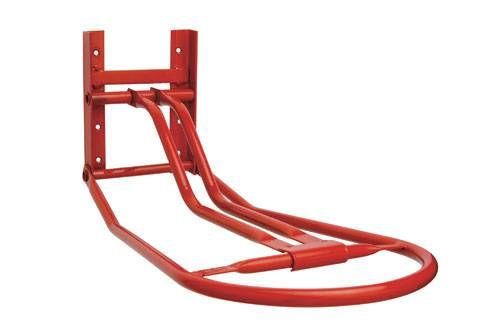 Plegable hacia abajo con la base ancha y la cruz hacia la pared.Colores: negro y rojo.