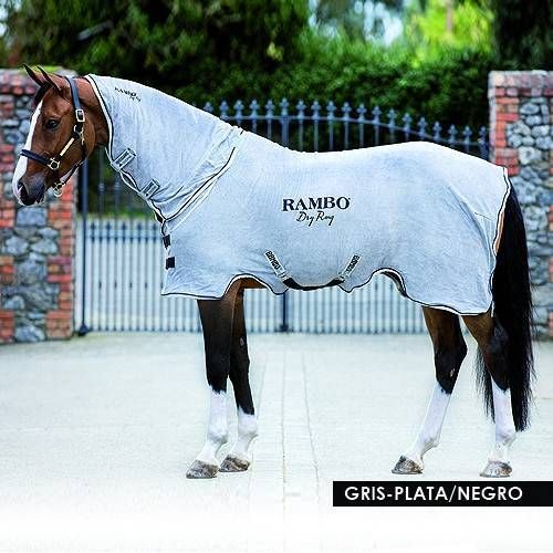 Desenrolle la capucha para secar la crin y el cuello, y vuelva a guardarla en un bolsillo oculto. Tambien dispone de cinchuelos cruzados elásticos.El sistema de cierre frontal ajustable permite un perfecto ajuste al tamaño y forma del caballo.Tejido tipo toalla de microfibra con las más altas capacidades de absorción y secado.