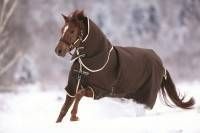 Tejido exterior: 1200 Denier.Impermeable y transpirable.Forro interior de nylon.Acolchada de abrigo (200 gr de relleno).Forma patentada en la zona de las manos para una libertad total de movimientos.Corte clásico HORSEWARE.Protector de cola incorporado.Posibilidad de capucha como accesorio.