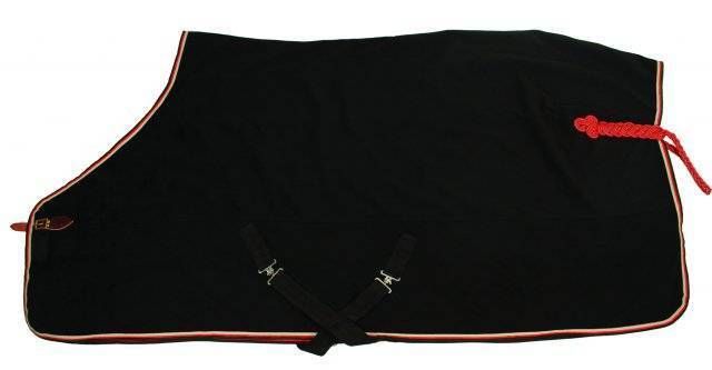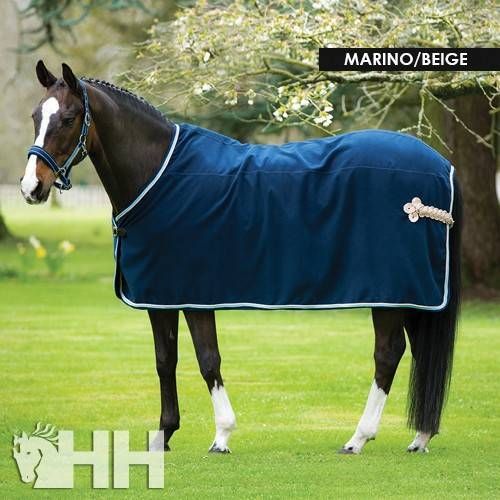 Manta de alta calidad para utilizar durante los concursos hípicos.Dispone de forro interior en la zona de hombros y espaldas y además posee muy buenas propiedades de secado.Correa de cierre frontal realizada en cuero de alta calidad y elegante cordón trenzado en la zona de la cola.Cinchuelos cruzados desmontables.Realizada en material sintético 400g imitando lana natural.