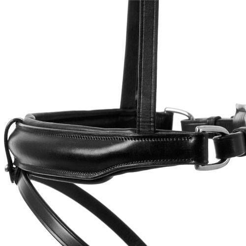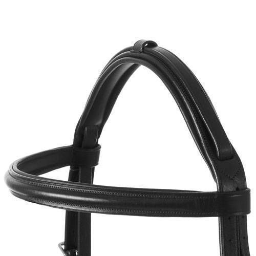 Cabezada para filete. No incluye riendas.Testera acolchada con montante de muserola por el exterior para un mayor confort del caballo.Muserola anatómica realizada en dos piezas ajustables muy ancha y acolchada con cierrabocas desmontable.Realizada íntegramente con cuero vegetal de primera calidad procedente de USA y curtido de forma ECOLÓGICA también en USA.Hebillaje de acero inoxidable.