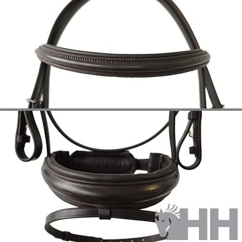 Cierre de la muserola de dos piezas con acolchado y correa para tensar.