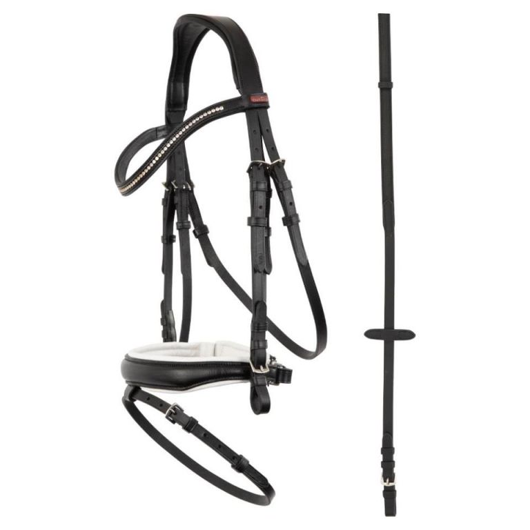 Muserola ancha y suave. Incluye: riendas de agarre con topes de mano.