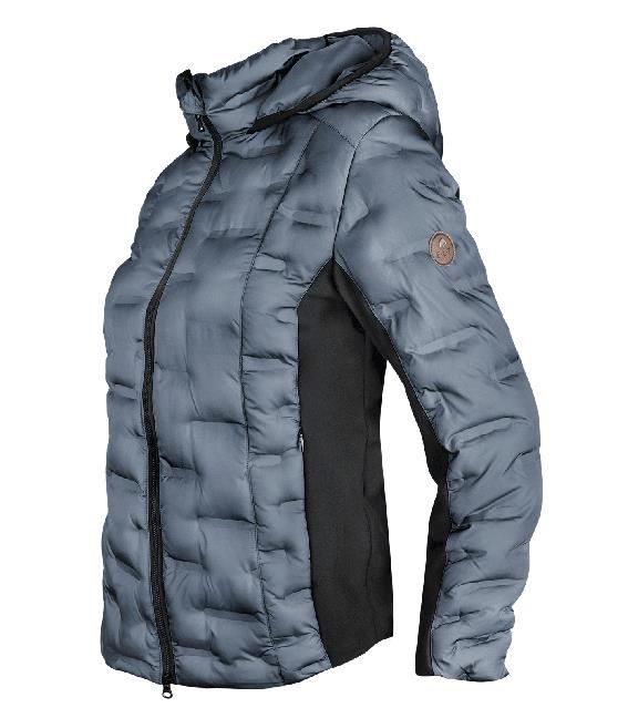 Chaqueta elegante confeccionada con mezcla de material en diseño de moda con suave acolchado- Acolchado con efecto plumón- Softshell envolvente en laterales y en los bajos de las mangas- Cuello acolchado- Capucha forrada complementaria, con opción para fijar en la espalda- Cremallera de doble cursor frontal decorativa con efecto metálico negro- 2 bolsillos con cremallera de costura fina- Bordes de punto interior en las mangas y en el ribete garantizan un remate resistente al viento- Corte entallado Resistente al viento y agua, fácil de cuidar, material delicado con la piel Material exterior: 100 % poliéster,Forro: 100 % poliéster, Cordones de punto: 100 % poliéster,Guata: 100 % poliésterwasserabweisendwindabweisend
