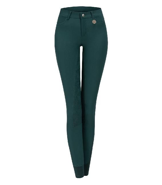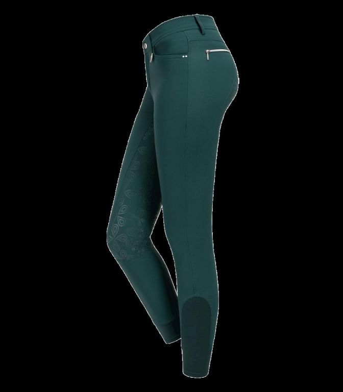 Pantalones de equitación de moda, elegantes con graciosos y tiernos detalles- Inserción de silicona con efecto floral- Dos bolsillos decorativos en el lado trasero- Dos bolsillos laterales con costura y tachas decorativas en el lado delantero- TrabillasCon inserción completa de silicona, bajo elástico deportivo, material en microfibra bi-elástica, transpirable, resistente al aguaMaterial: 93% poliamida, 7% elastano