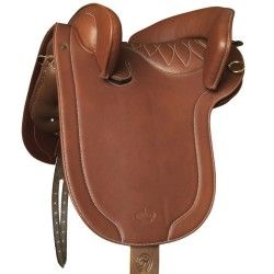 Sus borrenes son más altos y acolchados, con una flexibilidad que proporciona libertad de movimientos y, al mismo tiempo, seguridad. Entre la capa de cuero sillero y la piel exterior se ha incorporado un acolchado para mayor confort y seguridad del jinete.Armadura: termoformable.Bastes: rellenos de lana-poliéster.Forro de bastes: cuero.Sistema de cinchado: cincha de doma corta.Asiento: interior con doble capa de espuma, una de poro abierto y otra de poro cerrado.Cuero: sillero curtición vegetal de 3,5 mm forrado de boxcalf.Estribera: tradicional.Faldones: cuero doble o cuero doble grabado.Latiguillos: cuero cromo preestirado. Largos 75 cm insertados en el faldón.Peso (aprox): 9,60 kgAncho de cruz: normal, ancho o extra ancho. Longitud zona de apoyo del baste: 48 cm (aprox.)
