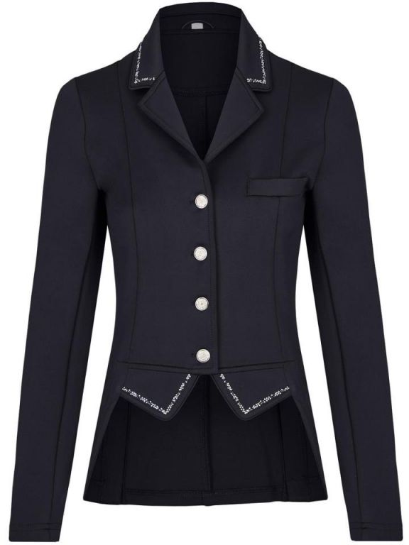 extravagante combinación de clásica chaqueta y elegante frac de domaentallada, corte clásico y corto de frac delante y longitud de chaqueta delante con dos aberturas para cabalgar atrásribete de pedrería pequeña en el cuello de solapa, ambas puntas del frac y en la zona de la cinturasienta perfectamente en posición central, gracias a la cremallera YKK® debajo de la botoneramodernos botones de diseño con pedreríabolsillo en el pechocómoda gracias al material elásticotranspirable, transporte óptimo de la humedadresistente, fácil de cuidar, de secado rápido, lavable en lavadoramaterial: 94% de poliéster, 6% de elastano