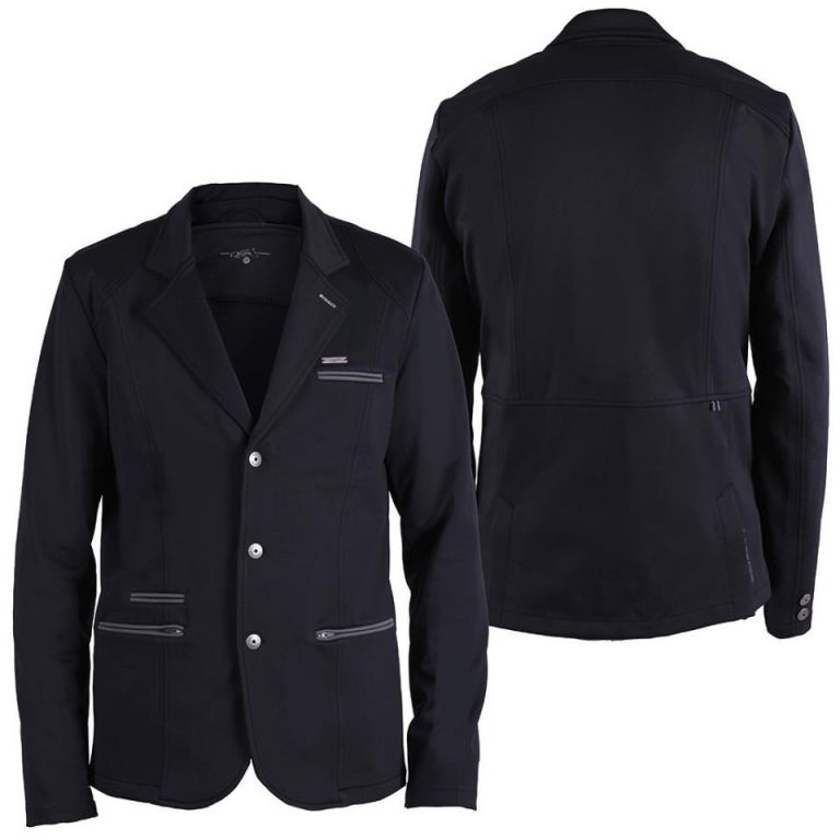 La chaqueta tiene dos bolsillos horizontales con cremallera y dos bolsillos de escoba falsos. La insignia de metal QHP completa el look. La ventilación derecha en la parte posterior tiene una impresión de "Quality Horse Products".