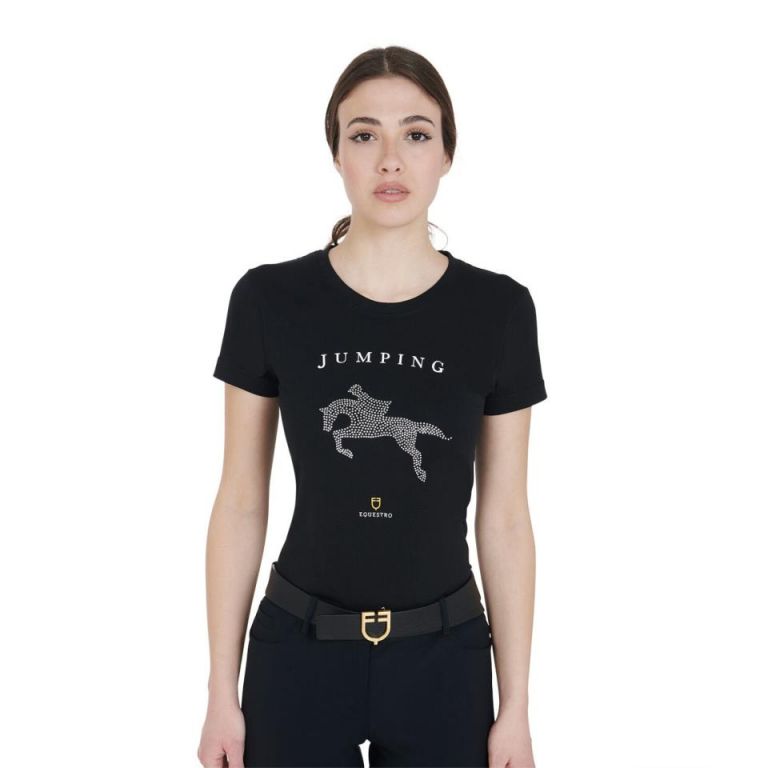 Combine elegancia y comodidad con esta camiseta de algodón femenina, perfecta para las apasionadas de la equitación que buscan estilo y rendimiento