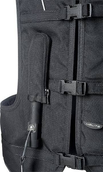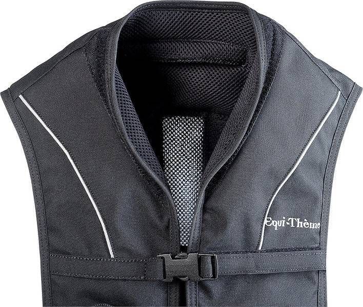 Exterior de poliéster y forro interior de malla poliéster 3D que garantizan una excelente circulación del aire dentro del chaleco y un contacto cómodo.Cierre por tres clips ajustables en la parte delantera.Certificación CE. Se debe llevar en competición oficial, en complemento de un chaleco de protección homologado BETA 1, 2 o 3, conforme a la norma EN 13158.Entregado completo con cartucho, correa y amarre de silla.Tiempo de hinchado integral: 0,10 segundo.Resistencia: fuerza necesaría a la cebadura entre 15 y 25 kg, presión interna al airbag 350 mBar (0.35 kg/cm²).Peso total: aproximadamente 900 g.