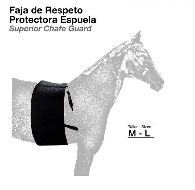 FAJA DE RESPETO O FAJA PROTECTORAFabricada en Italia, previene y protege las abrasiones en la piel del caballo en la zona de la cincha. Estas rozaduras tienden a formarse en una zona delicada que a menudo el jinete roza con las piernas, aunque no se utilicen espuelas.Este protector elástico sirve de prevención y protege el área expuesta a rozaduras para no estresar más al caballo y debilitarlo.Está fabricada con una tela elástica de muy alta calidad que permite transpirar la piel del caballo y, por ello, la zona afectada con rozaduras se regenera y recupera las óptimas condiciones.A la altura del pie tiene un refuerzo que sirve para incrementar su durabilidad y reducir el desgaste por uso, ya que la zona está sujeta a una presión continua que el jinete ejerce con el talón.La faja de respeto está equipada con un enganche para el asiento y con un cierre de velcro. Las cuatro correas (dos en cada lado) permiten sujetarla a cualquier tipo de cincha.