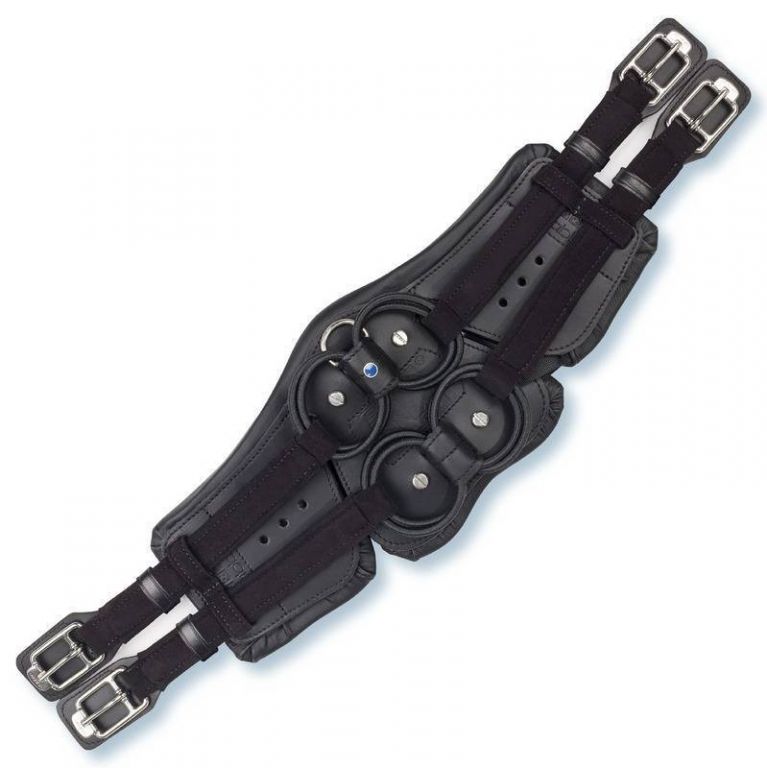 La cincha Equi-Soft ha sido creada para lograr el máximo rendimiento del caballo, bajo estrictas condiciones de confort.Su sistema, único en el mundo, ha revolucionado el concepto de ajuste y seguridad en el cinchado.La cincha EQUI-SOFT se adapta al contorno del animal, logrando la máxima comodidad, evitando pellizcos, presiones en la zona ganglionar y eliminando la resistencia natural que el caballo tiene hacia la cincha.Este valor agregado y absolutamente diferencial, sustenta los resultados de mejora en el rendimiento en el caballo, al lograr utilizar su máxima capacidad torácica aún estando ensillado.Cuenta con un diseño anatómico y líneas que acompañan el cuerpo del caballo.Su ingenioso y exclusivo sistema de gomas elásticas, ofrece una correcta distribución de las presiones al cinchar, absorbiendo todas las tensiones que en una cincha estándar amortiguaría el cuerpo del caballo.Esta pieza, se expande y contrae cuando la caja torácica lo requiera, manteniendo siempre una tensión uniforme sobre la montura.Todo su diseño es básicamente sencillo, de simple y fácil mantenimiento y totalmente seguro.La cincha Equi-Soft, es la única cincha en el mercado totalmente adaptable a la anatomía del caballo y con distribución proporcional de las presiones, sirviendo para todos los caballos y ponis.